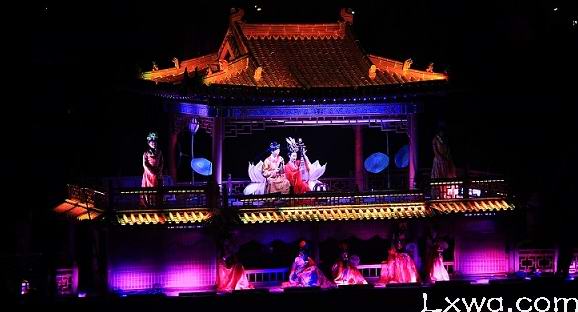 由国内顶级艺术家精心编制的大型水上实景演出,每晚在大型宋代文化主题公园清明上河园内上演。豪华的场景,经典的宋词,高科技的舞美,给人带来的是强烈的视听震撼。演出生动、真实的再现了北宋京都汴梁的盛世繁荣,踩着开封城脚下七朝古都的历史,厚重感油然而生,历史轮回的奇妙感觉也油然而生,仿佛看到大宋辉煌时万国朝圣的各国使节,文化鼎盛期的诗词书墨大家。强大的演出阵容、磅礴的气势、优美的宋词华章,将你带入千年盛世繁华的梦幻意境之中。