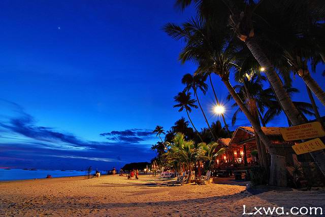 长滩岛入夜后,沙滩路旁的酒吧、餐厅都会将板凳搬到沙滩上来,整个白色沙滩都变成了各色各样的露天酒吧,非常热闹。