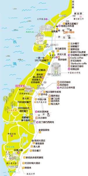 保椒路美食地处西湖北面,宝石山下,是众多餐馆的集中地。